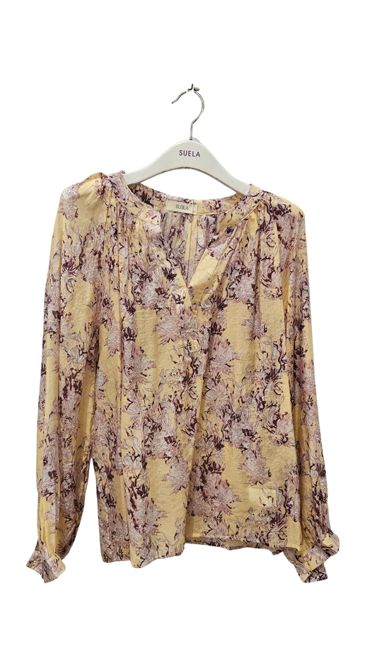 Blusa Vainilla Estampada Flores Burdeos Suela