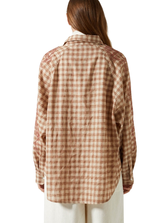 Camisa Cuadros Tostados con Bordados