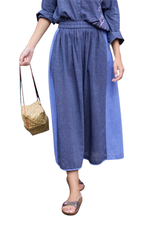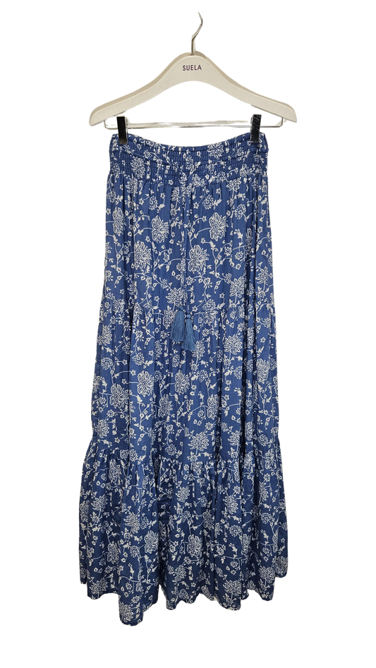 Falda Azul Flores Blancas (Da talla)