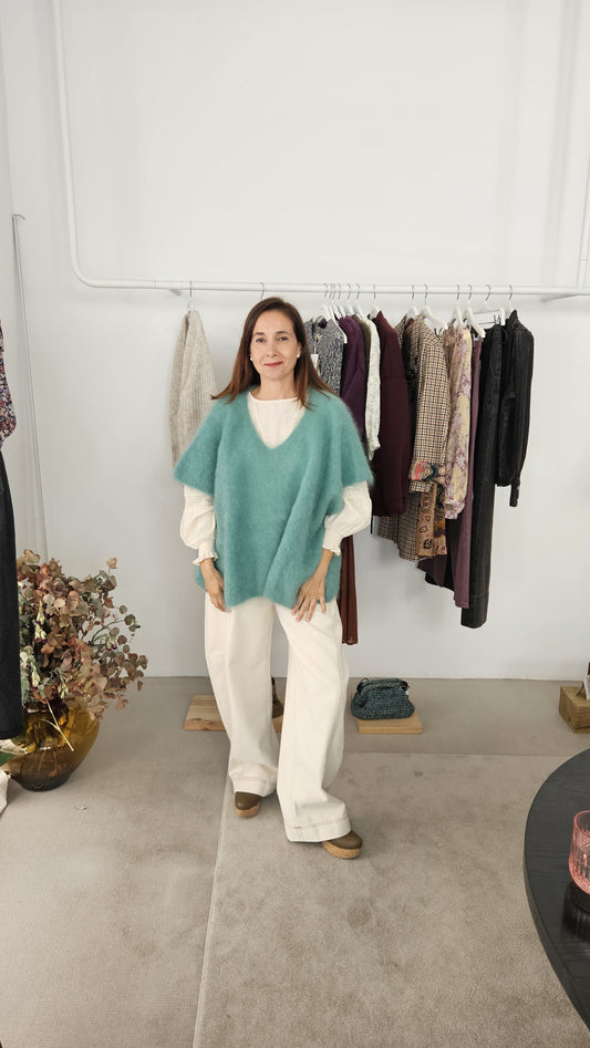 Chaleco/Jersey Manga Corta Kid Mohair Verde Menta
