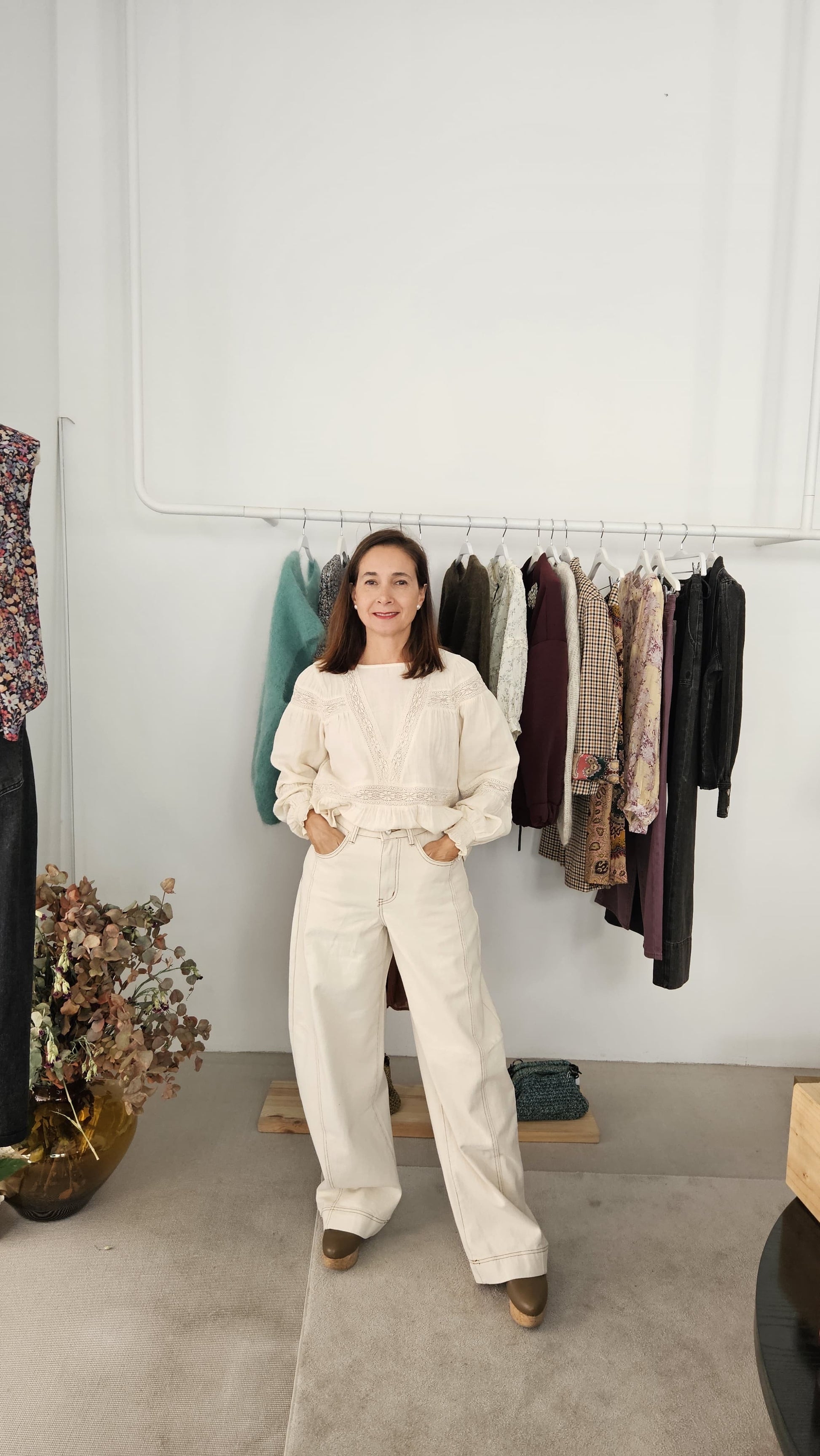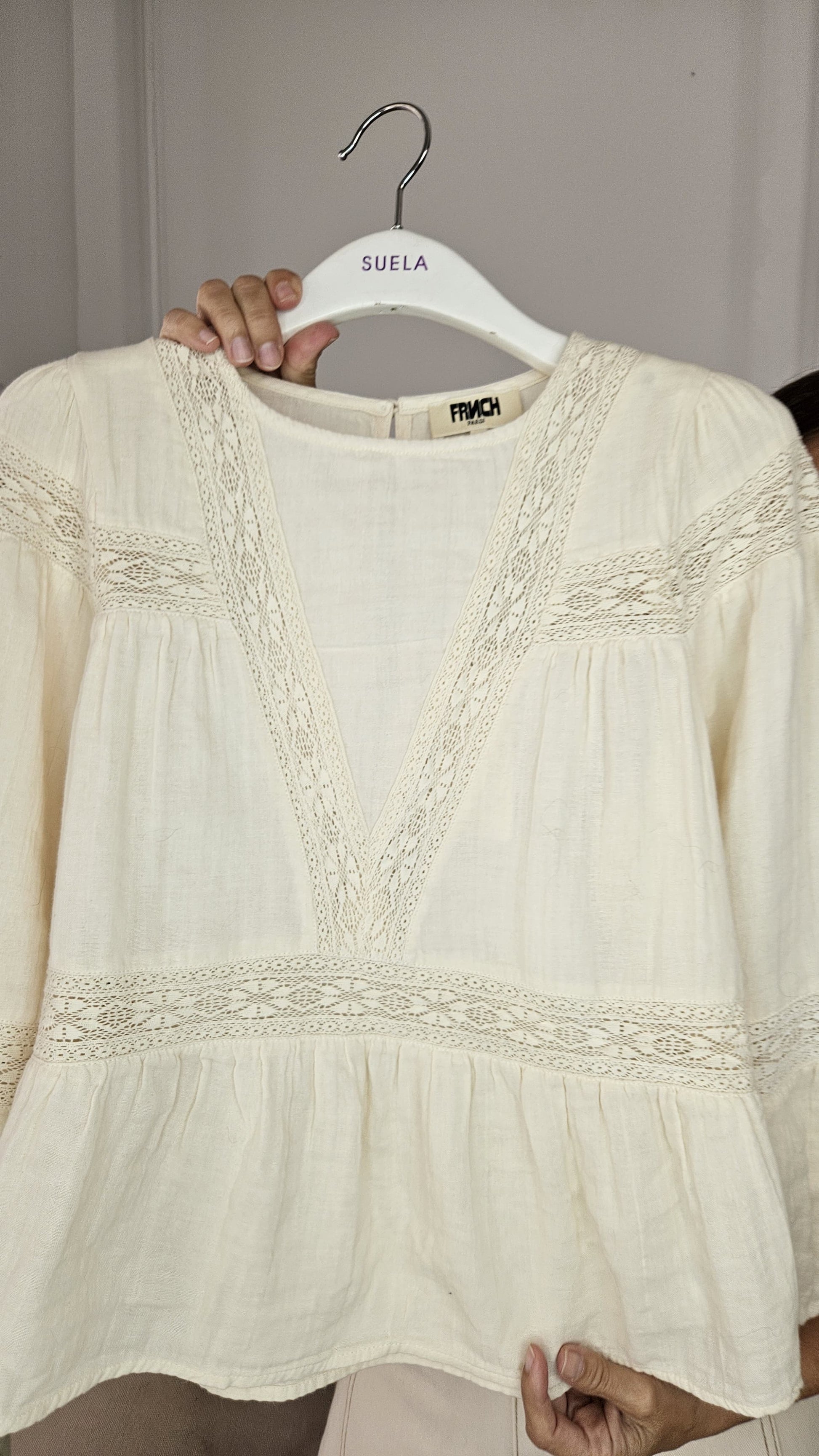 Blusa de encaje en color crudo elaborada en tejido de algodón.