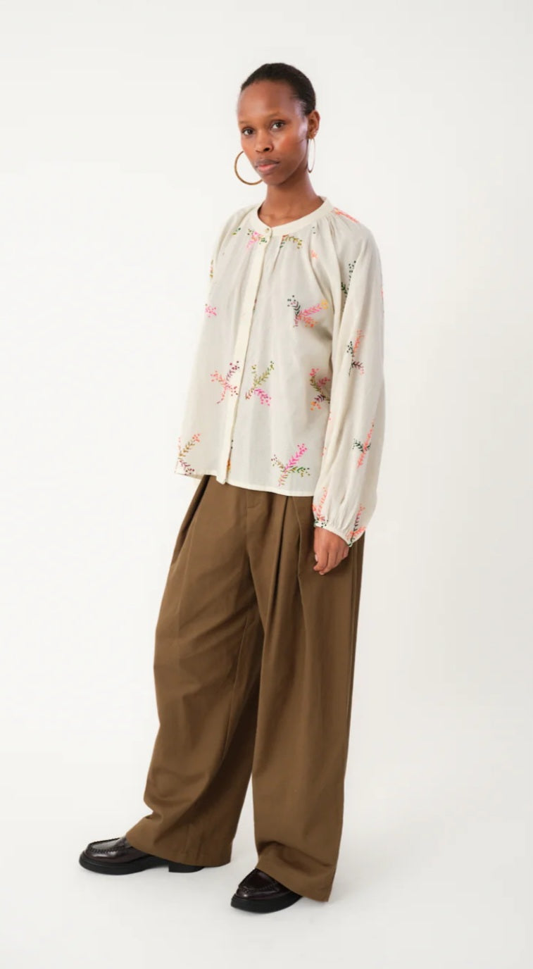 Camisa bordada en tonos neón.