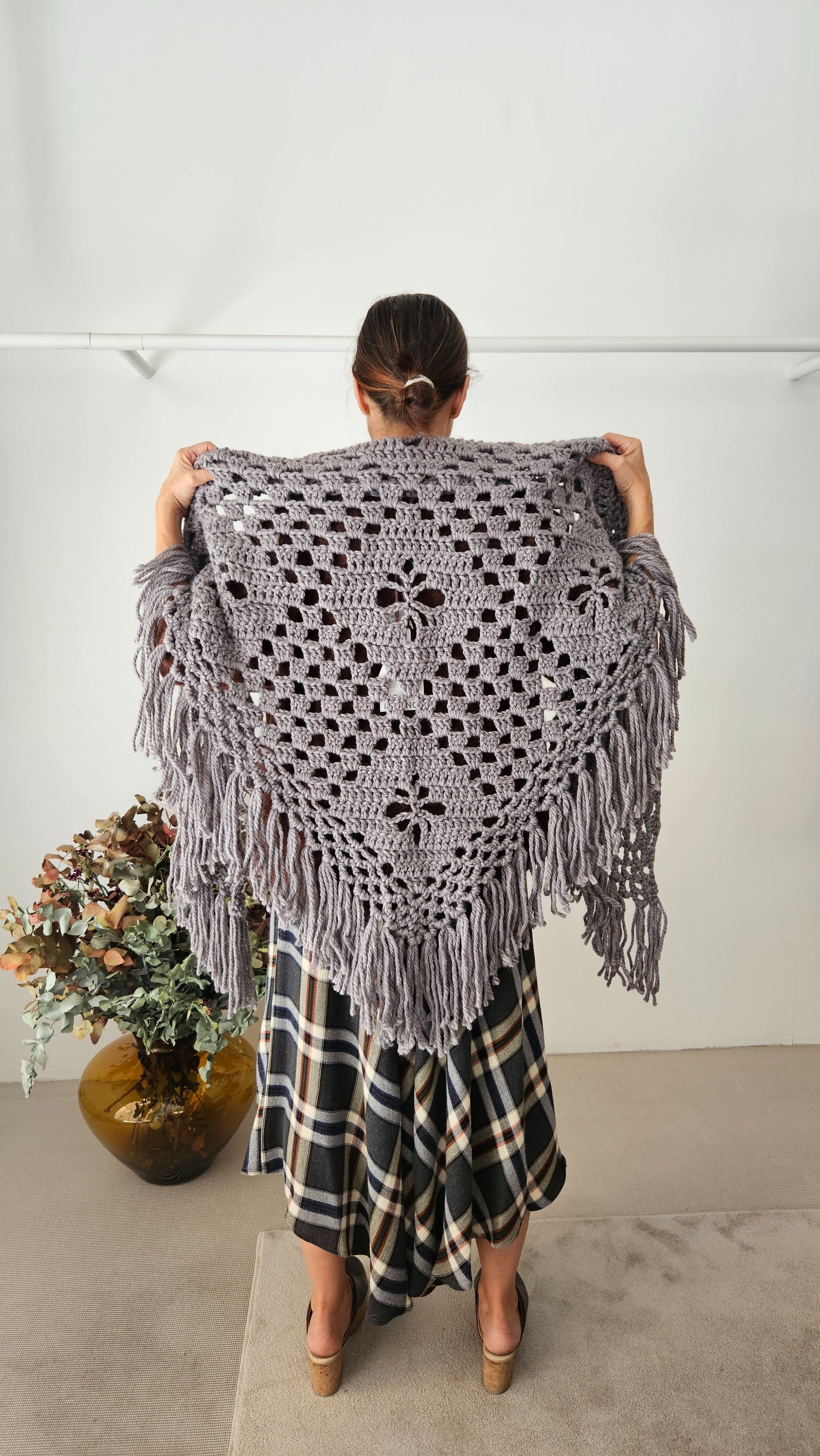 Chal de 55% lana merino y 45% acrílico.
