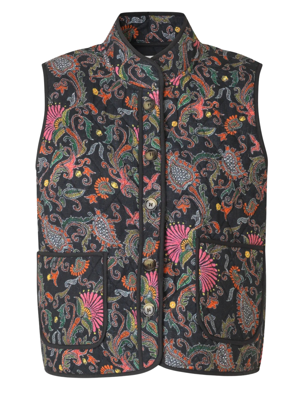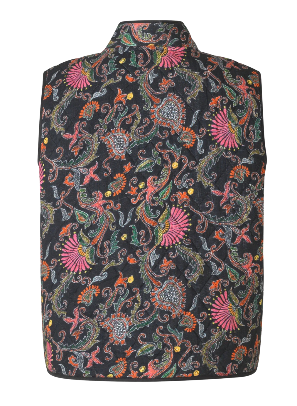 Chaleco negro de flores realizado en algodón con un ligero guateado.