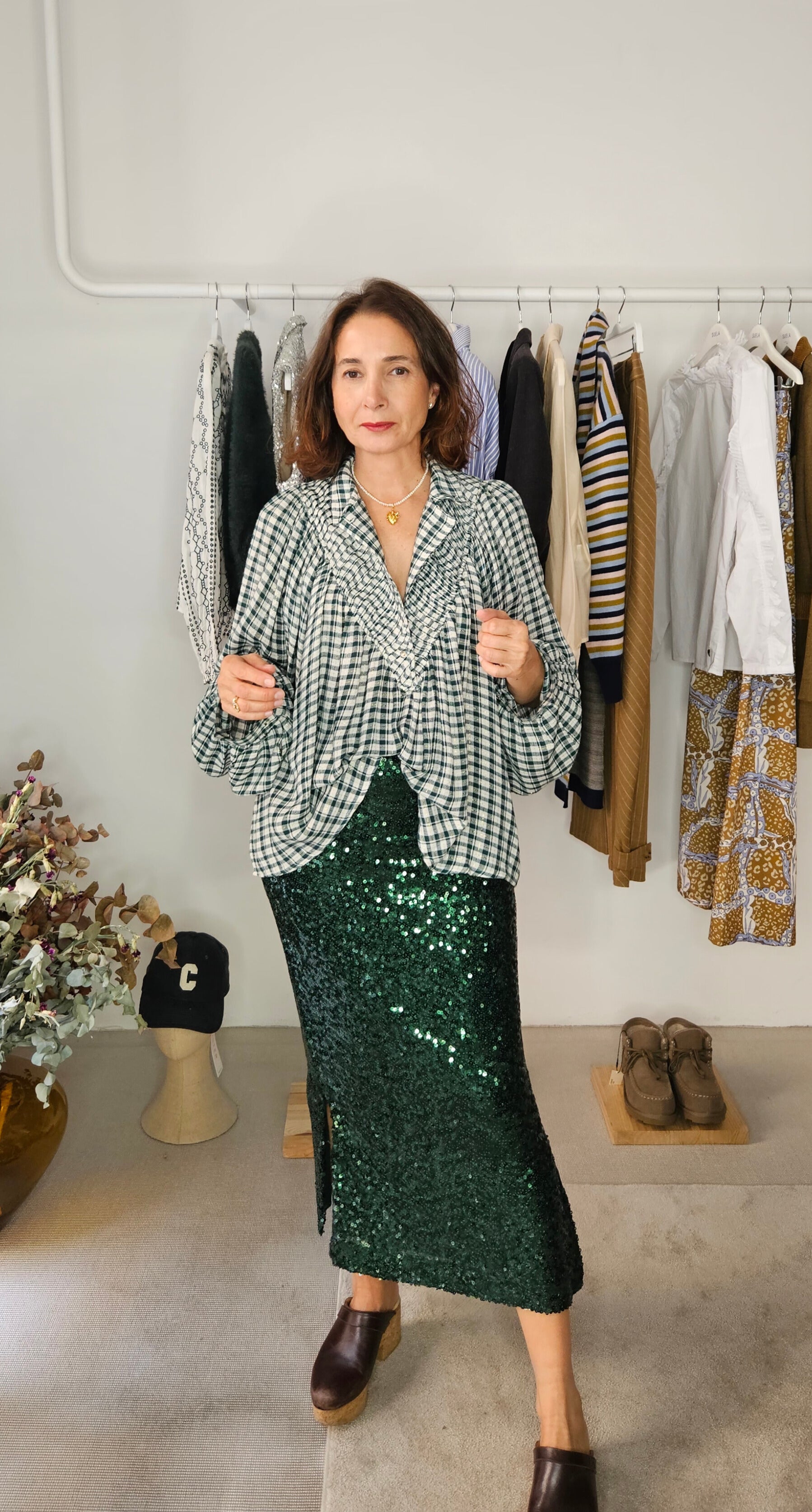 Falda Lentejuelas Verde Oscuro