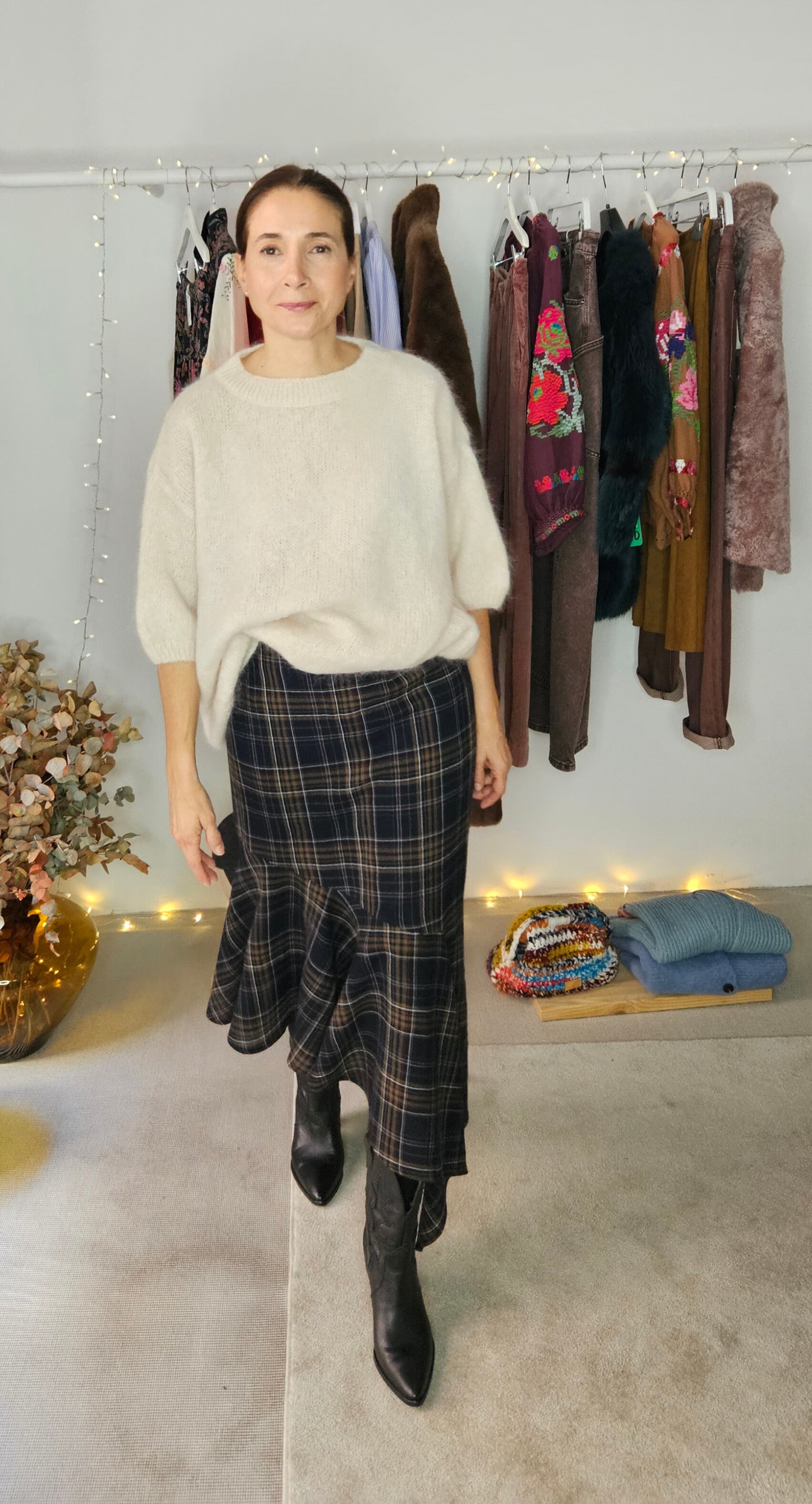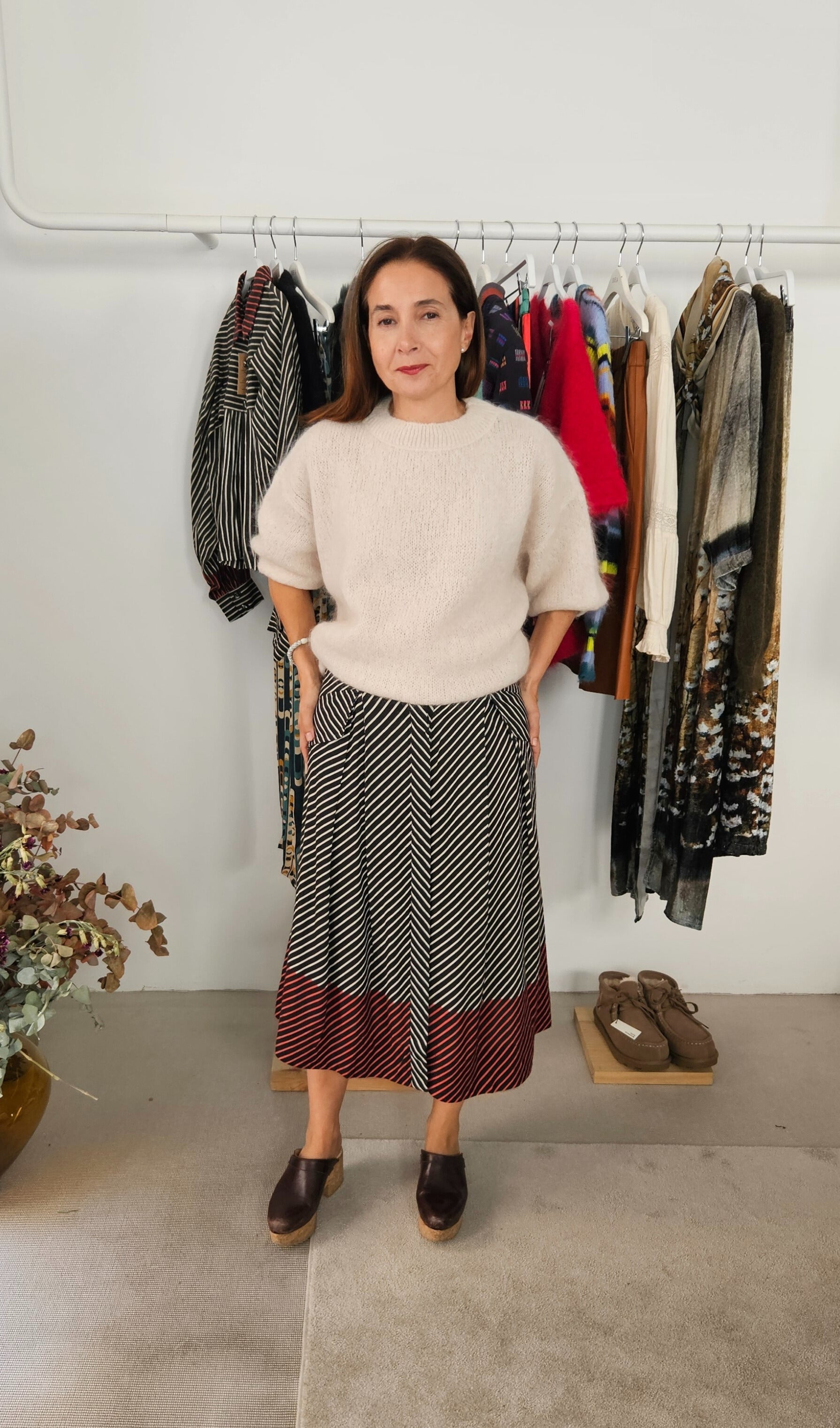 Jersey elaborado en mohair, lana y poliamida con manga al codo.