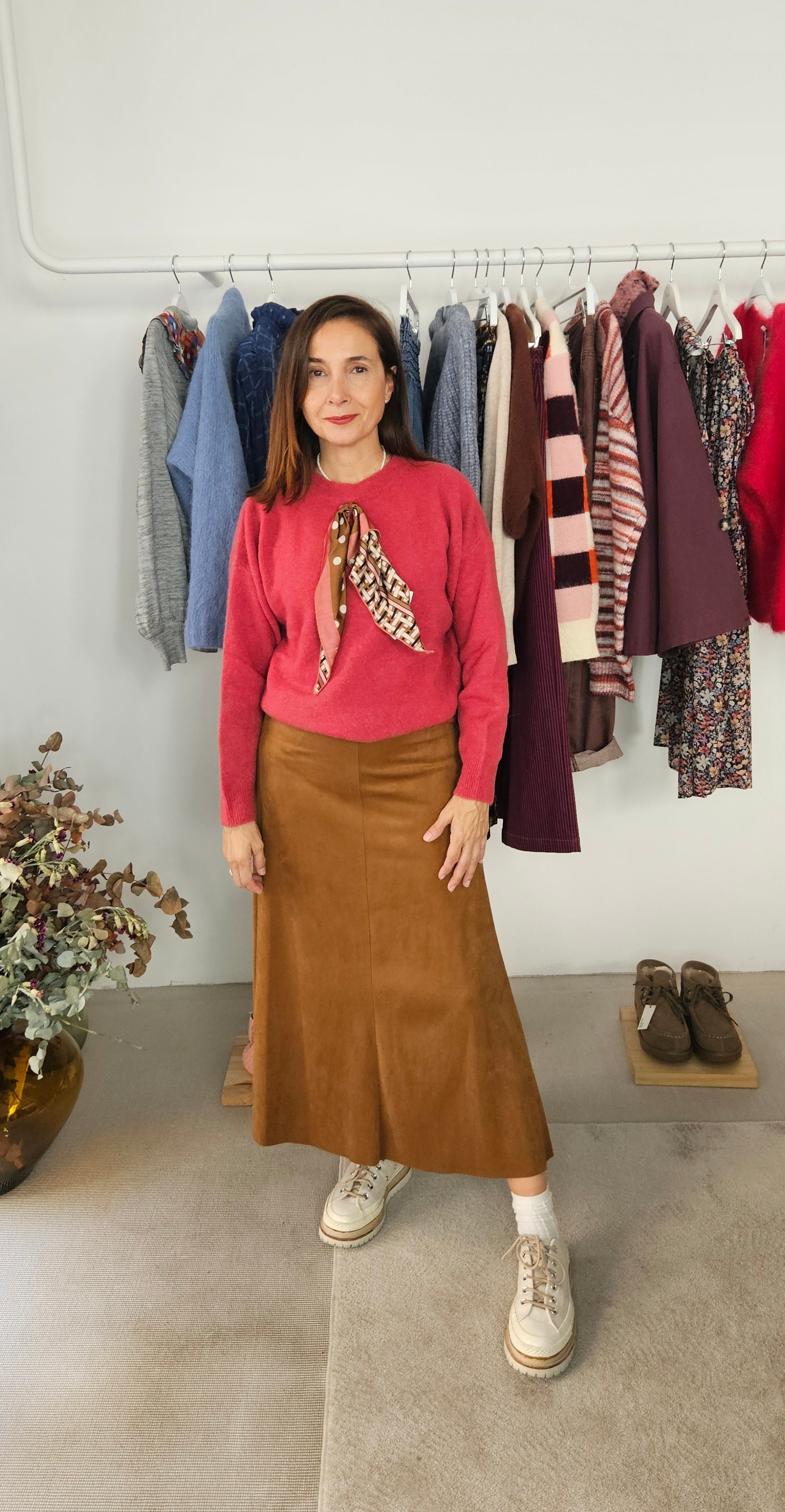 Jersey realizado en baby alpaca con pañuelo removible incorporado.