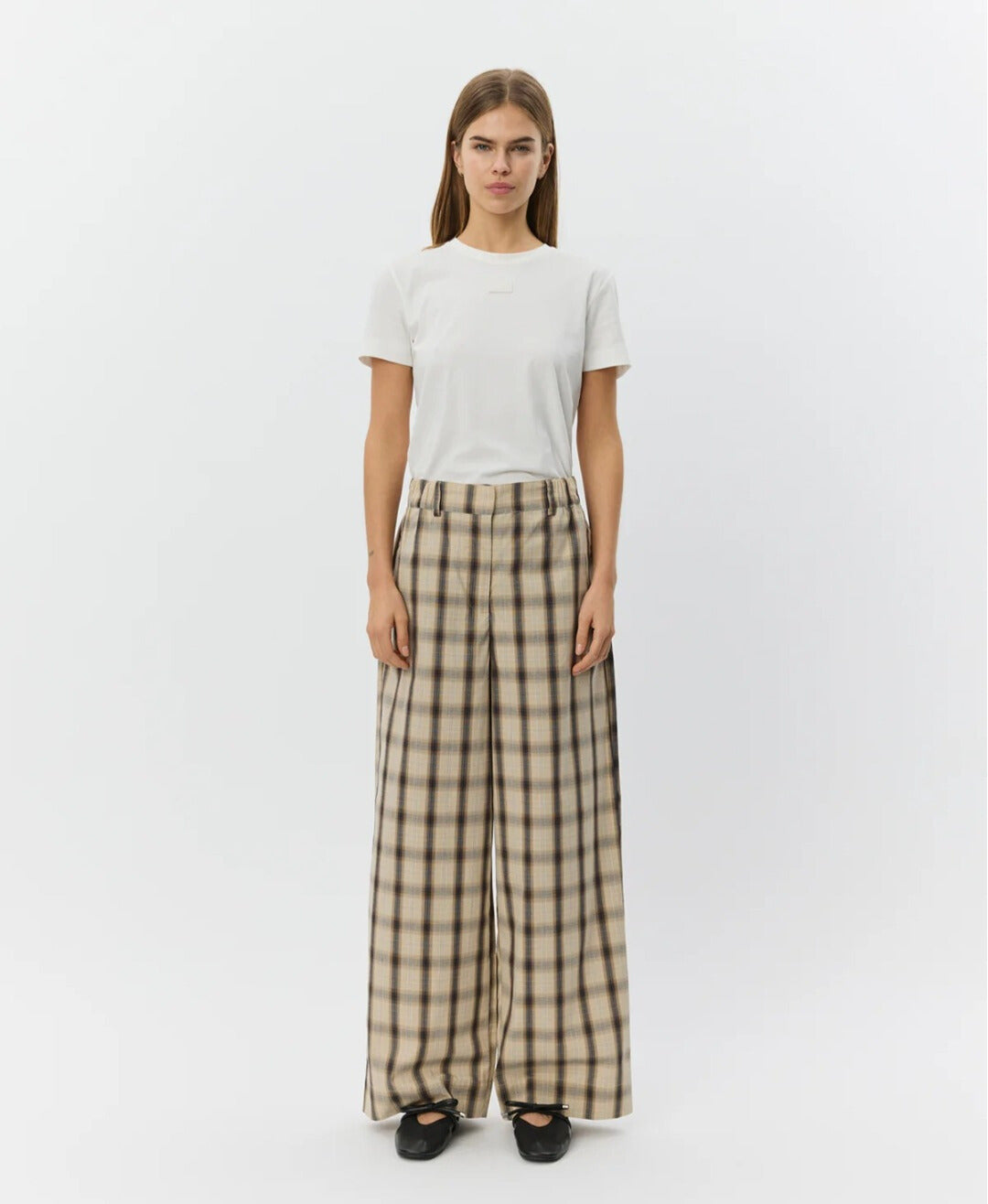 Pantalón de pierna ancha con estampado en cuadros.