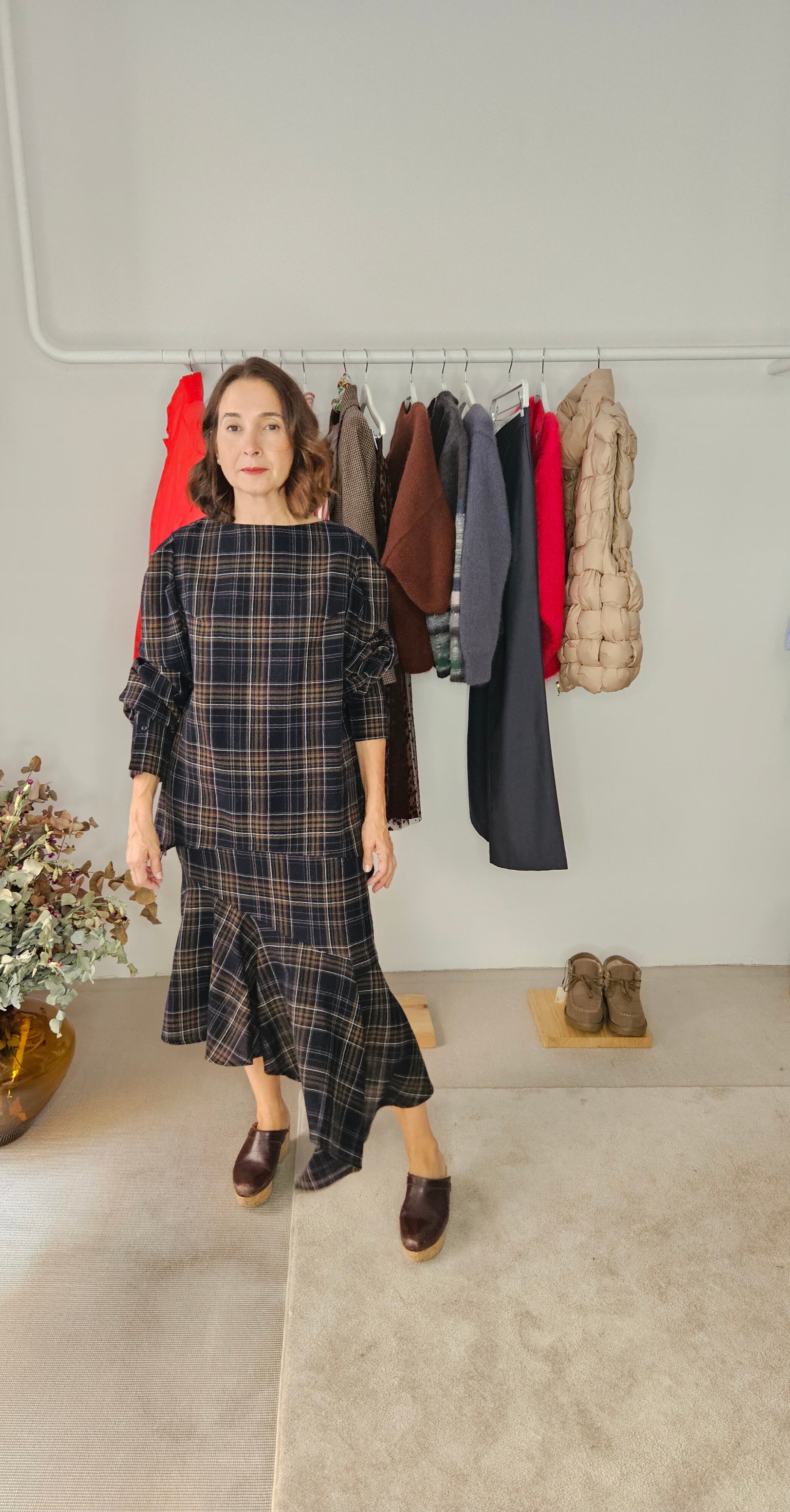 Top de Cuadros azules y verdes.Cierre con cremallera en la espalda.