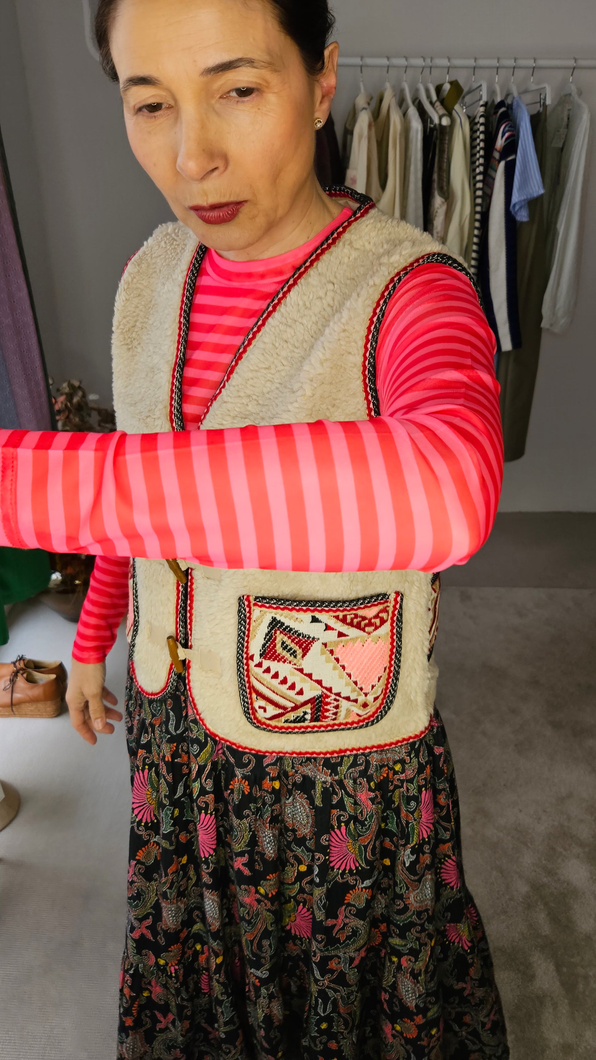 Top de tul con rayas fucsia.